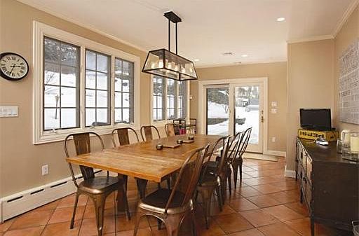 This striking, updated 1930s Tudor is wonderfully sited on a 27,300 square foot lot in West Newton Hill. It has central air conditioning and 2010 replacement windows throughout. The foyer is flanked on one side by the lovely dining room and on the other by the grand living room, featuring a beamed ceiling and a gas fireplace. Off of the living room is a sun room with sliding glass doors to the yard. There is a wonderful renovated kitchen with granite counters and stainless appliances that opens to the bright family room. Also on the first level is a powder room and a secondary entrance. On the 2nd level is the fabulous master bedroom with an en suite 2011-renovated bathroom with radiant heat. There are 3 more bedrooms on this level, along with the 2nd full bathroom, also renovated in 2011 with radiant heat and a frameless glass shower. The 3rd level has a large bedroom/bonus room, and the lower level has a playroom and direct entry to the two car garage. Professionally landscaped.