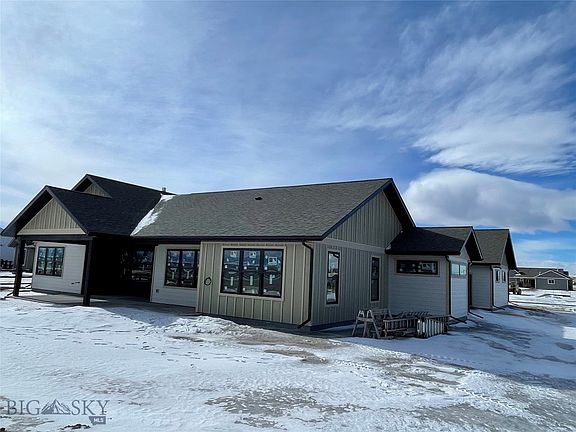 This property is located in Pioneer Crossing Subdivision in Manhattan MT, just minutes away from the Gallatin River! It is nestled in a community that reflects the charm of small-town living yet is minutes from Bozeman MT. The home backs up to wide-open space with unobstructed views of the Bridger Mountains. This custom-feel home has a well thought out floor plan filled with high end finishes and building materials. If you're looking for vaulted ceilings, a beautiful kitchen complete with wall oven/microwave combo, quartz countertops and a walk-in butler's pantry with a second refrigerator and sink, this is the home for you. The wall to ceiling stone fireplace, with mantle and shelving features is stunning in this open floor plan. This home is completely trimmed with real stained wood throughout and finished with quartz countertops throughout. It comes equipped with large Anderson windows, an oversized heated garage, two hot water heaters, multiple heating zones, and much more.
