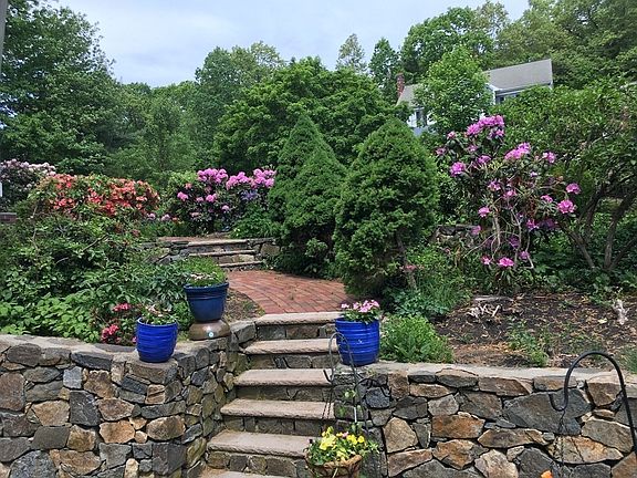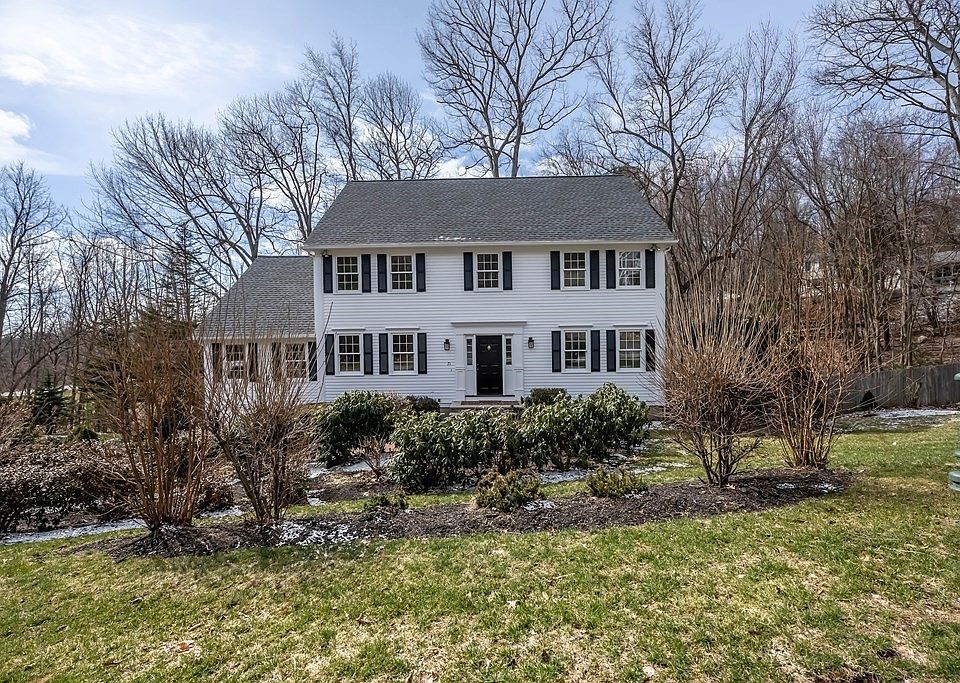 This home checks all the boxes. Premier location in Bear Hill area boasts town water, sewer and natural gas. Set on an acre wooded private lot in a sought after neighborhood. Amenities galore. Beautiful hardwood on 1st floor including the 26 ft. Cathedral ceiling FP. Family room now including two home offices. It features a newer insulated window wall. 28 ft Kitchen includes 2 pantry closets (one with a row of pullout drawers),built-in planning desk. Newer appliances include backless gas stove, & SS refrigerator. There are newer up-to-date granite & designer tile backsplash and overhang to accommodate stools. Off the kitchen is an updated half bath & first floor laundry. A slider leads to an oversized deck overlooking private yard. French doors lead to formal dining room. Lots of windows & natural light. 2nd floor has 4 bedrooms master with walk-in closet. Both baths have double sinks. Walkout lower level has 10 ft ceiling height, slider and double hung windows Plumbed for a bath.