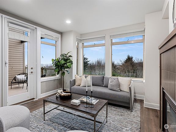 Luxury Living with Puget Sound, Mount Baker, evergreen trees and Whidbey Island views in this 1-bedroom + den home at Point Edwards. Expansive windows and a private deck showcase ferry crossings and sunsets. The open-concept layout features a gas fireplace, wide-plank hardwoods, and a chef's kitchen with granite counters, stainless steel appliances, a gas range, and shaker-style cabinetry. Built-ins and a utility room offer convenience. Enjoy resort-style amenities—pools, hot tubs, fitness centers, and a private 34-seat theater. Reserved garage parking and 2 storage units as well. Close to downtown Edmonds, the Waterfront Center, the beach with easy access to shopping, parks, and so much more! It is truly an incredible place to live!