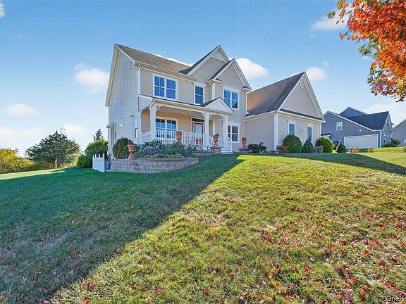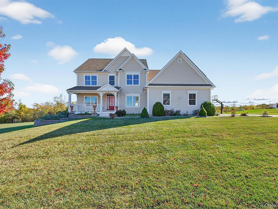 Welcome to the Ridges at Sleight Farm in LaGrange! This energy-efficient custom crafted four-bedroom, four full bath colonial with 3-car garage boasts picturesque mountain views while showcasing superior craftsmanship and attention to detail. The heart of this beautiful home is the gourmet chef’s kitchen designed for culinary excellence and entertaining. It features custom solid wood soft-close cabinetry, soft-close drawers, newer stainless-steel appliances, an expansive pantry, large center island, and granite countertops. The eat-in kitchen flows through French doors to a grand light-filled sitting/family room. Just outside is a stunning Tuscan-inspired Cambridge paver patio, where you can entertain friends and family or just revel in the breathtaking views of the Hudson Valley. The main floor offers an expansive primary suite featuring a sitting area, huge walk-in closet, and a spacious ensuite with ADA accessibility. Also on the main floor is an office that can easily double as a bonus room, a gracious formal dining room, and a well-adorned living room with a gorgeous fireplace and views for miles. The convenience of a laundry room on the main level adds to the practicality of this beautifully designed home. Upstairs features an open balcony that leads to three additional bedrooms and a full bathroom with double vanity. The lower level features a fully finished 1,200-square foot basement (not counted in overall square footage) with entry from both the garage and the main floor, featuring heat, A/C, high ceilings, and egress windows. This additional space includes a bedroom, full bathroom, and kitchenette, providing the potential for a possible in-law suite or au pair space, or use the huge open area as a rec room for your teens or extra space for family gatherings. The home is equipped with top-of-the-line mechanical systems, owned solar panels on a 50-year roof (10 years in), a whole-home warranty system, 3m solar windows, natural gas, and a 16 KW generator, ensuring comfort and efficiency. 5 mins to award-winning Arlington schools, Taconic State Parkway, stores, hospitals, and colleges.