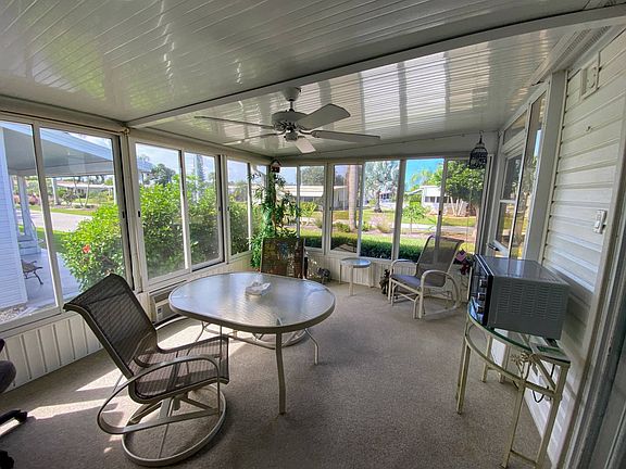 Would you like to live in a gorgeous and roomy turnkey home in a community filled with amenities? This 2 Bed / 2 Bath has 1,456SQFT of open concept space with some exceptional perks including a stocked kitchen with oven/range, fridge, dishwasher, microwave, garbage disposal, and a beautiful kitchen island, as well as a washer and dryer set. The home also includes ceiling fans, walk-in closet, en-suite bathroom off of the master, and cathedral ceilings. The A/C was recently replaced in 2017 and a generator is also included. The beautiful exterior is another exquisite feature with attention-to-detail landscaping, its own sprinkler system, hurricane shutters, and a screened-in covered porch to enjoy the Florida climate. There is also a golf cart that can be negotiated. If this sounds like paradise, don't let it pass you by. Jamaica Bay is a gated community of manufactured homes in south Fort Myers designed for age-restricted residents who want to enjoy a fun and active lifestyle. Amenities include: 24-hour staffed gatehouse, (3) clubhouses with verandas, poker room, craft room, (2) heated pools, whirlpool spa, fitness center, locker room with saunas, (12) shuffleboard courts, (3) bocce ball courts, (4) tennis courts, (2) pickle-ball courts, putting green, (2) horseshoe pits, (4) billiard tables, pub tables, library with wireless internet, (3) stocked lakes, BBQ & picnic areas, and planned community activities. Do not miss out on this stunning Florida home - Come play at Jamaica Bay!