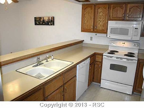 Great townhome in Gleneagle minutes to the Air Force Academy! Quiet and comfortable in District 20 features include, 3 bedrooms - each with their own bath, master bedroom walkout to elevated view deck, vaulted living room w/ fireplace, full kitchen w/ microwave and refrigerator included, walkout dining room to back yard patio, 22x15 basement family room w/ small bar area for entertaining, additional 10x4 inside unfinished storage and minutes to gas and groceries. Ready for your personal touch - must see if looking in D20!