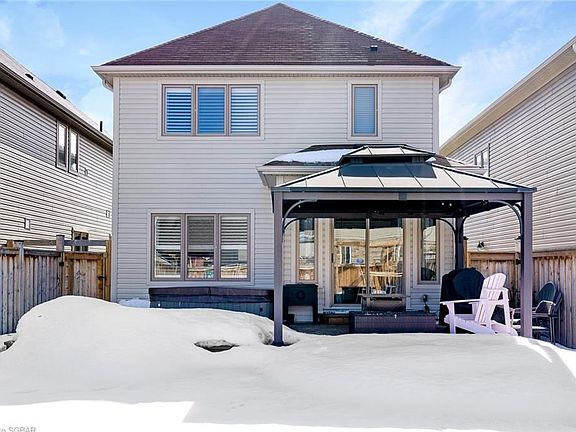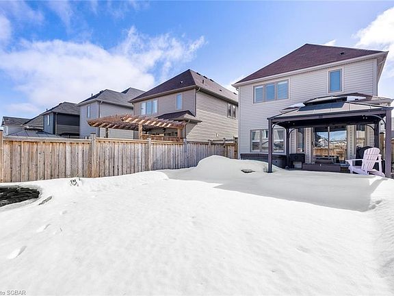 Beautiful 3BR, 2.5 Bathroom 5 year old home in Pretty River Estates Collingwood. Beautifully finished with 1,545 sqft above grade comfortable living space. Upgraded granite countertops in kitchen and all bathrooms. Fully landscaped and fenced back yard with zero maintenance landscaping, patio, pergola, hot tub and water feature. Spacious primary bedroom with 3pc ensuite and laundry in walk in closet. Additional laundry hookups in lower level. Two additional spacious and bright bedrooms on the second floor with a 4pc bathroom. Large single car garage with overhead storage area. Unfinished basement has been framed and has a rough-in for a 4pc washroom. This property shows very well.