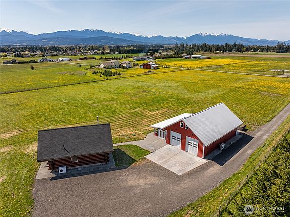 Spectacular mountain views from this brilliantly engineered 2510 SF main home plus 860 SF satellite log home w/coffee bar. The main home w/metal roof features a 600 SF heated/finished sunroom area, stylish kitchen, wet bath, family room area and bedroom/loft space all heated by radiant floor heat. In addition to those spaces there are two heated and finished 15x15 interior flex rooms to suit your needs. Log home was built by NW Log Homes and features radiant floor heat, granite tile floors, wood f/p, wet bath and coffee bar. Upstairs there is a sleeping/loft area along w/a small deck looking east towards Mt. Baker. Served by a 4 BR septic which will allow for future reconfiguration or development. Addtl. technical features in Assoc. Docs.