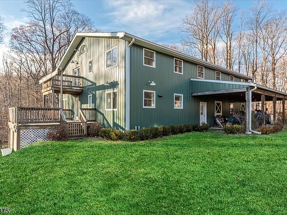 Exceptional Opportunity! Secluded Custom contemporary home set back on a private 6.45 acre farm w phenomenal mixed use 2-story 60X40 barn outbuilding constructed w superior craftsmanship using F2 Factory Industrial Standards. The energy efficient home is highlighted by a great room w vaulted beam ceiling, skylights, freestanding woodstove & walls of windows including sliders to newer deck w hot tub. Overlooking the great room the kitchen has a bar & granite counters. A hallway overlook leads to the spacious primary suite w 2 closets Including a walk-in closet, recently updated en-suite bath & new carpets. 1st floor bedroom. Outbuilding features a separate septic w grease trap, commercial grade kitchen, professional stainless steel appliances, abundant workspace w studio/offices, vaulted ceiling guest quarters, 2 luxurious baths, over-sized 3-bay garage w 2 hour fire wall/door, hay loft & tons of storage. 3 Livestock barns w water & electric, fenced pastures, chicken coop, fruit trees & stream. Special features include low Farmland Tax Assessment, Generac 11 KW generator for house & barn, new roof, multiple decks, Andersen windows, electric fencing, extensive exterior lighting. Perfect for diverse agriculture, catering, bakers, food entrepreneurs, contractors, car enthusiasts, hobbyists & so much more! Desirable location near historic Califon is close to shopping, dining & parks. Great commute near Rts 78,31,22 & bus/train service. Prestigious Blue Ribbon Voorhees High School.