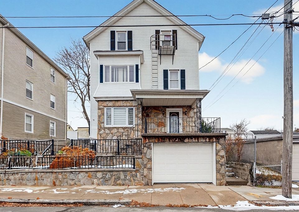 Well-maintained three-family property offering strong layout flexibility and separate utilities for each unit. The first-floor unit features two bedrooms, hardwood and tile flooring, and additional finished basement space with kitchen, bathroom, living area, and interior access, connected to first-floor utilities. The second-floor unit offers three bedrooms with a mix of hardwood, tile, and linoleum flooring. The third-floor unit includes three bedrooms, with carpet over hardwood in two bedrooms and an additional room in the foyer area. Full finished walk-out basement with interior and garage access. Vinyl and stone exterior, porch, and asphalt shingle roof thats about 8-10 years old. Individually metered electric and gas. Conveniently located near local amenities with easy access to transportation.
