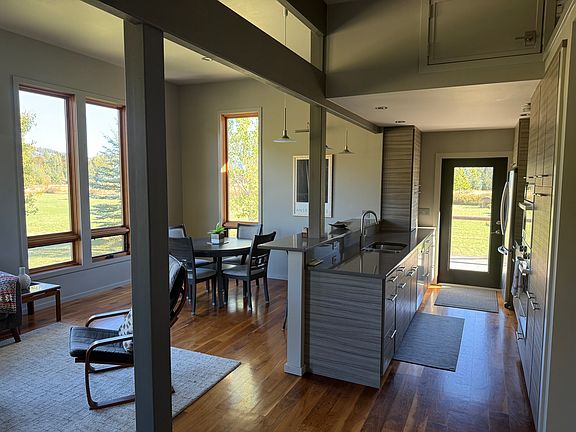The home is located on a 5 acre parcel, approximately 1/4 mile from the Clark Fork River, 1 mile from the town of Clark Fork, and 27 miles from Sandpoint. There's plenty of opportunity for outdoor recreation (fishing, hiking, hunting, skiing, etc.) with easy access to the river and surrounding mountains. This contemporary home has beautiful views, is nicely appointed, has high speed internet with a separate T.V room. It is super insulated, with a high efficiency ductless mini-split for heating and cooling, hardwood floors, area rugs, galley kitchen, dishwasher, wall oven, microwave, cooktop, washer and dryer. The home is move in ready and fully furnished, complete with dishes, utensils, pots and pans, towels, linens, etc. There is plenty of parking, but no garage.