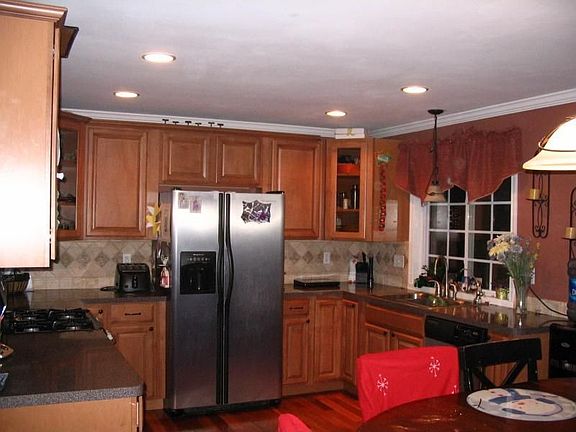 NEW KITCHEN. MAPLE CABINETS, SS REFRIG, BUILT IN MICRO,, GAS RANGE. HIGH END PREFINISHED HW FLOORS IN LR, DR, KITCHEN. GAS FPLC IN LR, PELLET STOVE IN FAM RM. REMODELED BATH. NEWER WINDOWS/ROOF. NEW VINYL SIDING AND FIELD STONE ON FRONT FOUNDATION. NEWER BOILER SET FOR SECOND ZONE IN BSMNT (CURRENTLY ALL ONE ZONE). FAMILY ROOM WITH BAR (WALK OUT/RAISED RANCH!). HUGE SIDE YARD WITH AMAZING PLAY SET FOR KIDS. GARAGE REDUCED IN SIZE AT THIS TIME, CAN BE SWITCHED TO FULL SIZE. GREAT VALUE. ABOVE GROUND OIL TANK. GARBAGE PICK UP $82/QUARTER, WATER AND SEWER $200/QUARTER/
