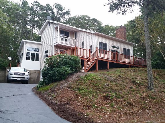 Fabulous area! Wonderful family 3 bedroom 2 bath home with pretty views of Taylor's Pond! Lovely living room with vaulted ceiling, fireplace & sliders out to the deck, adjacent kitchen & pretty open dining room! Family room on the lower level! Boating to Nantucket Sound from the dock across the road from your home! Swimming steps away or walk around the bend to the sandy beach on Cockle Cove!
