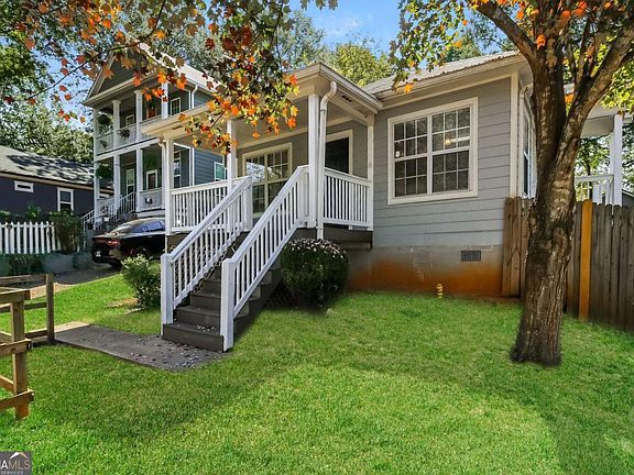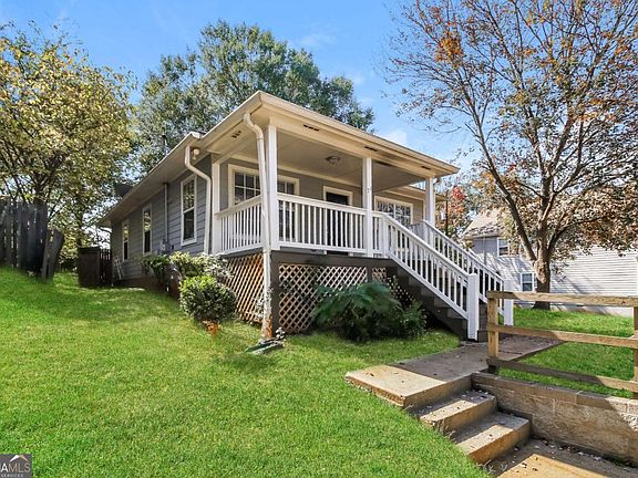 Welcome to 71 Thayer Avenue SE in Lithonia, a single-story ranch built in 2001, offering 1,066 square feet of comfortable living space on a 0.18-acre corner lot. Enter into a bright living area graced with hardwood floors that flow seamlessly into a dining space enhanced by luxury vinyl. Fresh paint sets a modern tone as you move through the layout, where three bedrooms and two full baths deliver both functionality and ease. The kitchen displays stained cabinetry, laminate counters, and efficient flow toward the dining and living areas. The primary suite provides a private escape with an attached full bath, and walk-in closets add convenience. Outside, a front porch presents an inviting transition to the outdoors, while a fully fenced backyard with a wood outbuilding offers privacy and flexibility for storage, hobbies, or relaxation. Parking is handled via a driveway, and there is no HOA. Nestled within Historic South Atlanta and close to downtown, public transit, parks, and schools, this home blends city access with neighborhood peace.