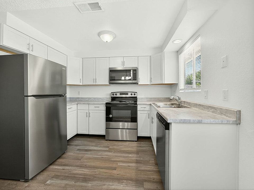 Remodeled Kitchen: Contemporary design with updated appliances and finishes.
