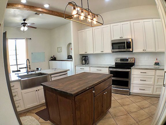 Welcome home to one of Del Rio's most wonderfully unique houses! Situated on a level, grassy, beautifully manicured acre, this 5 bedroom, 4 bathroom house has a very rural feel despite being just outside city limits. It feels very quiet and secluded, yet it is still close to everything in town and only 17 minutes to your office on base. Save $$ on much lower county property taxes and no sewer or water bill. Enter the fully-fenced acre through your remote-operated solar gate and down your 250' paved driveway, perfect for bike riding, basketball, or whatever else you dream up. Choose between the two car car garage with attached single carport or the two-car carport with 16x22' attached workshop and patio. Wave hi to the chickens in their large and sturdy coop with automatic closing door and dedicated run. They lay about 5 eggs a day and even the chickens can convey with the sale, or we can re-home them if you prefer. Check on the enormous irrigated & fenced gardens on your way in one of the two main entrances. Through the solid wood front door is an enormous great room with tons of natural and recessed LED lighting. To the right is one bedroom with en suite bathroom and oversized window. To the left is the huge master suite with large walk in closet, oversized windows, and recessed LED lights. The master bathroom features plantation shuttered windows with tons of natural light and more recessed LED lighting. The his and hers showers with rain shower head and his and hers vanities are perfect for keeping everyone’s things in their place. Through the enormous great room there is another bedroom to the left with en-suite bathroom and a huge walk-in closet. Past the great room is the main kitchen with shaker-style cabinets, beautiful custom quartzite countertops, stainless steel farm sink, faux wood beam, and a ton of natural light, a ton of LED recessed and hanging lights, and remote-operated under cabinet LED lighting. Adjacent to the kitchen is the breakfast nook with tons of storage. Next to the kitchen is a large walk-in pantry and the laundry room with cabinets and rack storage, with a window overlooking one of the patios. The back half of the house has another dining room, sitting area, and a second small but full kitchen with full-size refrigerator, stove, and pantry. Adjacent to the second kitchen is another laundry room with more cabinet storage and a washer/dryer that convey with the sale. Down the hallway are another full bathroom and two bedrooms. The smaller bedroom has a walk-in closet and beautiful views of the back of the property through its oversized windows. The enormous bedroom has a large walk-in closet and lots of natural light as well. Features of the house are: 2x6 construction, metal roof, solid wood interior doors, fresh paint throughout, recessed lighting in most common areas and master bedroom & bathroom, 10’ ceilings, newer appliances and kitchen cabinets & counters, Nest thermostats, whole-house air purifier, newer water heater, newer toilets, and recently pumped septic. This is an awesome house and we don't want to leave it, but work is calling us away. We are flexible! Fast or long close, lease back, etc. Realtors ok---we'll pay the buyer's agent 3%.