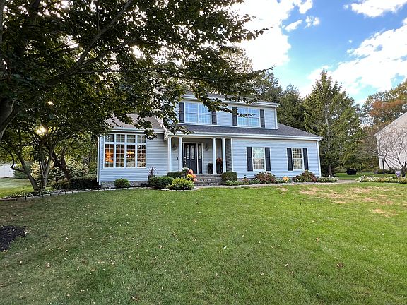 Don't miss this incredible opportunity to own a beautifully maintained three-bedroom, two-and-a-half-bath Colonial style home, tucked away in a peaceful walking neighborhoodt! Set on a lovely, private, and functional lot, this home offers exceptional outdoor living space with a large (21x18) Trex deck with vinyl railings, tumbled stone patio and walkways, and cobblestone-accented walkways. The inviting covered front porch and mature landscaping create wonderful curb appeal from the moment you arrive. Step inside to discover 9-foot ceilings, elegant crown molding, and a bright, open floor plan designed for both comfort and style. The formal living room features transom windows that fill the space with natural light, while the dining room with chair rail and crown detailing is perfect for formal gatherings. The remodeled eat-in kitchen will delight any chef with its granite countertops, glass tile backsplash, center island, and stainless-steel appliances, seamlessly opening to the spacious family room highlighted by a stone wood-burning fireplace with bluestone hearth. Upstairs, retreat to the expansive primary suite, complete with dual closets and a renovated full bath featuring dual sinks and a granite-topped vanity. Two additional bedrooms and another full bath complete the upper level. The unfinished lower level offers endless potential for future expansion, home gym, or recreation space. This home offers peace of mind for years to come, with a new roof, new gas Navien boiler with on-demand hot water, updated cooling system, maintenance-free vinyl siding, vinyl replacement windows, 200-amp electrical service, and a new water purification system. Located in a wonderful walking neighborhood, just minutes to Route 10, I-84, and all the fantastic restaurants and shops of downtown Southington, this home truly has it all-comfort, quality, and convenience.