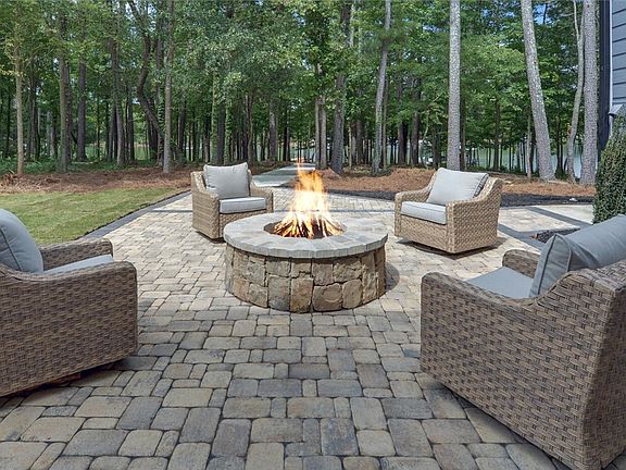 Natural gas fireplaceCovered upper deckCustom light fixturesShared double slip dockDry stack cobblestone accentsCustom white oak cabinetsQuartz countertops