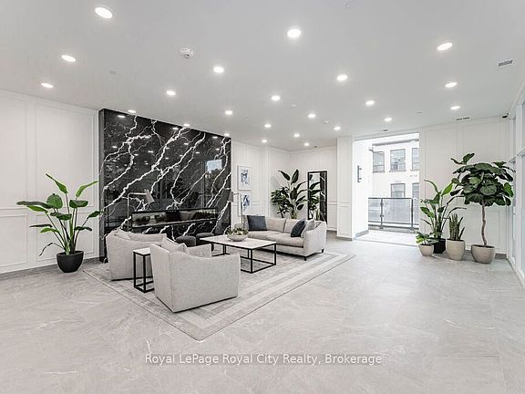 Experience the pinnacle of luxury in Unit 608 at the stunning Edgewater Condominium, a truly exclusive residence ideally located at the picturesque junction of the Eramosa River in vibrant Downtown Guelph. This remarkable 2-bedroom, 2-bath residence redefines upscale condo living. Upon entering, you'll be greeted by a seamless blend of modern style and practical elegance. The unit features engineered hardwood flooring throughout the living area and all bedrooms, creating a warm yet sophisticated atmosphere. The gourmet chef's kitchen is a true highlight, boasting a spacious waterfall island, high-end appliances, a stylish backsplash, and sleek stone countertops. The open-concept layout effortlessly connects the kitchen with the living and dining areas, accentuated by an impressive floor-to-ceiling tiled fireplace and a walk-out to a private balcony showcasing breathtaking city views. The thoughtfully designed primary bedroom offers a serene retreat, a generous walk-in closet, a private balcony, and a luxurious 5-piece ensuite featuring a standalone tub, glass shower and heated flooring. The second bedroom is conveniently located near a chic 3-piece bath and laundry area. Large windows throughout the unit bathe the space in natural light, enhancing the calming neutral tones. Additional conveniences include one underground parking space, a storage locker, and access to outstanding building amenities like a library, elegant party and media rooms, a fully equipped fitness centre, and guest suites. Living at Edgewater means being surrounded by a vibrant downtown filled with boutique shopping and exquisite dining, alongside the peacefulness of nearby parks and rivers. With easy access to GO and VIA train stations, this location is ideal for relaxation and commuting. Seize the opportunity to make this luxurious condo your new home and join the privileged few who can call Edgewater their own.