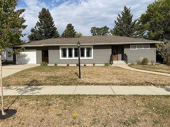 Rare opportunity to purchase this gorgeous ranch-style home on a premier street in De Smet. There is a beveled glass wooden front door leading into the front hall. Living/formal dining room measures 15 1/2 by 28 feet with a huge south facing window, letting in lots of natural light. There are 3 bedrooms on main floor, all with large closets. The home office is right off the front hall. The updated, eat-in kitchen has stainless steel appliances only 2 years old with room for the whole family at the kitchen table. The main floor laundry has an exterior door leading to the backyard cement patio. A fourth, non-legal bedroom and bathroom is in the basement. The lower level also has a very large family room with knotty pine walls and a spot for an electric fireplace. No sump pump needed. Huge storage rooms down there also. Single car attached garage has a 10' wide overhead door. Oversized detached single garage to the alley with a 10' door also. Mature trees. Close to schools. Close to the medical facilities so the street is always cleared quickly in winter. Too many updates to list. This home views the beautiful Washington Park.