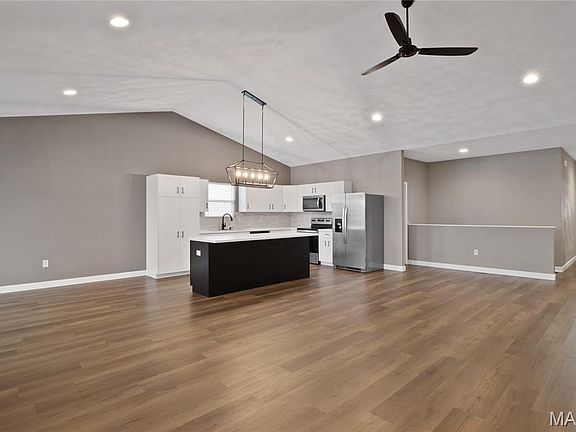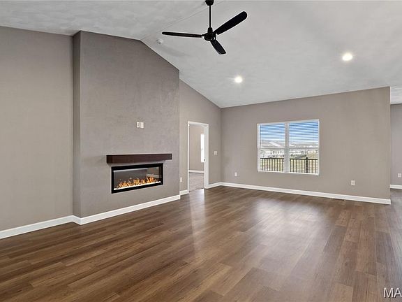 Experience luxury in this stunning villa Built by Mike Holland! This spacious semi split-level floor plan, open-concept home offers maintenance-free living at its finest. Expansive vaulted ceilings create a bright, inviting atmosphere perfect for entertaining. Gourmet eat-in kitchen boasts Corian countertops, stainless steel appliances & flows seamlessly into the family room & dining area that lead out to a good size covered deck. Main level includes LVP flooring throughout the common areas. Spacious guest bedroom, a flex room, laundry, and a luxurious primary suite with dual vanities, large shower, & oversized walk-in closet. Full unfinished basement provides ample storage & future added living space. Conveniently located in the sought-after O'Fallon Township HS District, this home is minutes from the interstate, shopping & Scott AFB. HOA $450/yr Fountains + $175/mo Thomas Pointe: lawn care, landscaping, street snow removal, pool access, walking paths & sports fields.