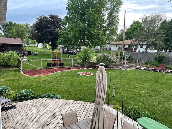 This meticulously maintained 4-bedroom split-level home offers an excellent blend of space and privacy, featuring two bedrooms and a full bath upstairs and two additional bedrooms and a full bath downstairs. The comfortable basement family room provides a cozy retreat and is highlighted by a convenient electric fireplace. Step outside to a fantastic outdoor oasis that includes a spacious wood deck, an additional patio, and a small garden area within the large, private backyard. The home also boasts a delightful sunroom that overlooks the backyard, perfect for year-round relaxation. Recent major updates ensure peace of mind, including a new roof and new vinyl siding both installed in 2024. Parking is easy with an attached 2-car garage featuring a newer garage door. This property is ideally situated close to Lincoln Elementary School and is just a quick three-minute drive to the High School.