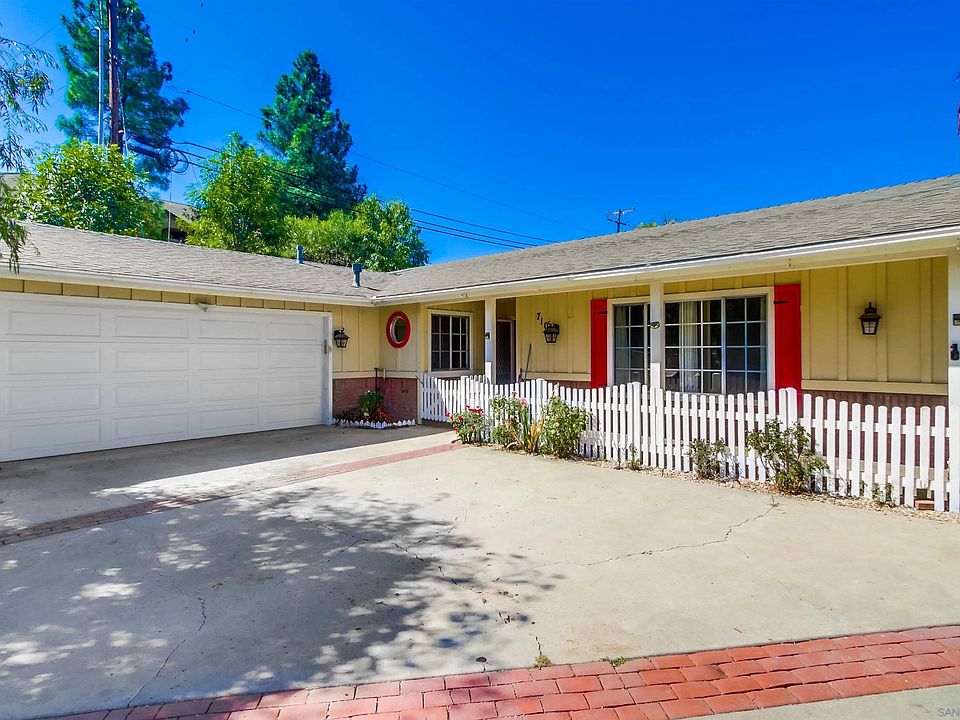 **Extremely charming 3Bedroom / 2Bathroom single-level home on a large 11,367sf lot with a cottage-style feel** Walking distance to Downtown Fallbrook, this home features a two-car garage, air conditioning, washer/dryer hookups, a redesigned walk-in closet in the master bedroom, and a huge backyard. At every turn you'll find charming aesthetics including a white picket fence on the wrap-around porch, red shutters, a beautiful brick and wood fireplace, and exposed wooden beams in the living room and master bedroom. This home is quintessentially Fallbrook providing proximity to everything happening in town in a quaint country-style home. Perfect for a family to add value by remodeling / adding their own thoughtful finishes.