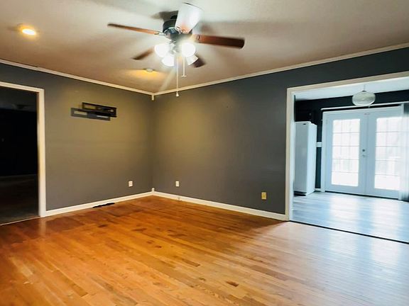 This 3-bedroom, 2-bathroom home features a split bedroom floor plan, offering privacy and functionality. The large master suite includes ample closet space and a private bath, while the additional spacious bedrooms provide generous storage with large closets.Enjoy both a formal dining room and a breakfast area in the kitchen, perfect for family meals and entertaining. Step outside to a fully fenced, oversized backyard, ideal for kids, pets, and outdoor activities. The detached garage has power and water available, with a concrete driveway leading to it—perfect for a workshop or extra storage.A large block-and-concrete cellar offers additional storage space, and the crawl space has been recently encapsulated with a dehumidifier installed for added efficiency and peace of mind.
