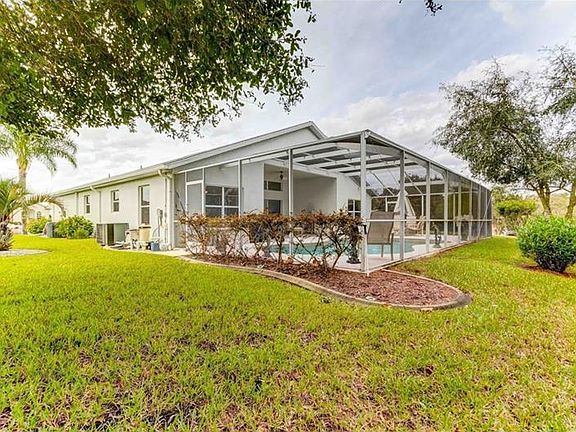 IMPROVED PRICE!!!This beautiful 2/2/2 with den and very PRIVATE HEATED POOL area is located in quiet cul-de-sac with no build behind-just a wonderful elevated view of trees for PRIVACY and the pleasure of Nature right out your back door! The extended lanai gives a tranquil country feel while enjoying golfing available at the Wellington at 7 Hills, 55 and over GATED community with shopping. Central vac. Tasteful Florida them murals accent and brightens the large kitchen. Kitchen: wood cabinets, pull out drawers, solid surface counters and decorative back splash. NEW A/C. Lanai area wired for spa. The garage is EXTENDED 3 ft and lined with cabinets-plenty of storage space living room for cars or perfect man cave. 24/7 manned security gate.