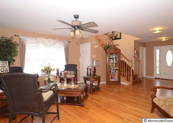 STUNNING FOUR BEDROOM 2.5 BATH OPEN FLOOR PLAN HOME. OVERSIZED EAT IN KITCHEN FLOWS CONVENIENTLY INTO A LARGE FAMILY ROOM WITH COZY GAS FIREPLACE. BRIGHT WHITE KITCHEN FEATURES RECESSED LIGHTING AND CERAMIC TILED FLOOR. SLIDING GLASS DOORS OFF OF KITCHEN LEAD TO A MAGNIFICENT DECK AND PROFESSIONALLY PAVED PATIO. HOME FEATURES WELL MAINTAINED HARD WOOD FLOORS THRU OUT. MASTER BEDROOM SUITE FEATURES A HIGH VAULTED CEILING AND EXTRA LARGE BATH. THE HUGE WALK IN CLOSET WILL HOLD YOUR ALL CLOTHES. GENEROUS SIZED OTHER BEDROOMS FEATURE HARDWOOD FLOORS AND ARE SERVED BY A LARGE BATHROOM. CONVENIENT SECOND FLOOR LAUNDRY. A HIGH CEILED ONE CAR GARAGE WITH OVERSIZED PRIVATE DRIVEWAY CAN ACCOMODATE UP TO FOUR CARS WITH OFF STREET PARKING. PULL DOWN ATTIC COMPLETES YOUR NEW HOME.