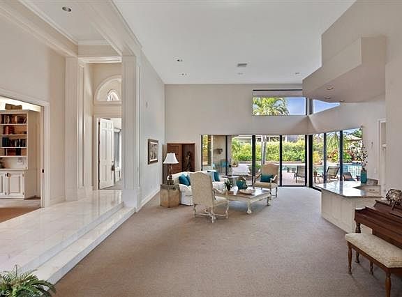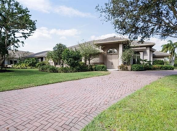Pelican Bay custom estate home designed by award winning architect Randall Stofft and featured on the cover of Florida Architecture, combines traditional sophistication with contemporary lines. 15 ft. ceilings supported by tall columns with custom moldings allow for seamless long views in each direction. The formal living room looks out through rear walls of sliding glass to the 2000 sq. ft. multi-level outdoor entertainment space with lush tropical landscaping, over-sized custom swimming pool, waterfall spa and professional outdoor kitchen. The open concept kitchen and family room, complete with a stone fireplace, features granite counter tops, built in dual ovens and full-sized side by side Sub-Zero refrigeration. A gallery leads to a private wing that features the MBR suite which includes a large sitting area, 2 generous closets and an impressive master bath with neutral custom cabinetry, his and hers vanities with limestone counter-tops, 2 water closets and an over-sized spa shower. There are 3 additional bedrooms, 3 full and 1 half baths and a 3-car garage with extra storage. Includes membership to the private beach club.