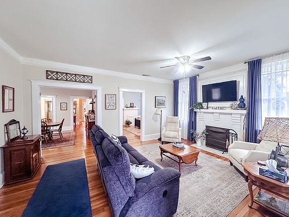 Beautiful 1948 Craftsman-style home filled with charm and character! Features include high ceilings, transoms, old coal burning fireplaces in living room and bedrooms, original hardwood floors, wide front porch, and a classic portico. Enjoy a cozy living room with lots of natural light and a large formal dining room separated from the kitchen by a butler's pantry with original built-ins, currently used as an office. The kitchen offers a walk-in pantry and stainless appliances. The updated bathroom blends modern convenience with period tile and fixtures. Two large bedrooms provide plenty of space. Outside, you'll love the fenced backyard, brick shed, and a camper/boat shelter that also makes a great outdoor entertaining area. Other features worth mentioning are a brand-new HVAC, spray foam insulation, tankless hot water heater, and great attic storage! Move-in ready and full of personality, this one is a rare find!
