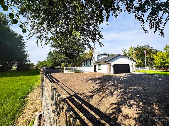 The essence of country living! Former custom Parade of Homes build. This beautiful home has a large heated shop on a fully fenced .98 acres near the Sunny Slope wine region, Lake Lowell and Indian Creek Plaza. Spacious gourmet kitchen with a large island and granite counters. Primary suite with vaulted ceiling, walk-in closet and jetted tub! Generous living room with picture windows and adjacent dining area for family gatherings. Upstairs you'll find three spacious bedrooms including the owners suite & two full bathrooms. Downstairs, a large family/great room with custom sheetrock ceilings, new pellet stove, bar area, additional bedroom/office, full bathroom and laundry! All with its' own separate entrance! Wrap around gated driveway with access to the heated shop with 220, RV Parking with hookups, covered patio, garden area with orchard and fenced pasture with loafing shed. Private well, reverse osmosis water system and back up generator ready! New carpet, fresh paint inside and out, you've got to see it!