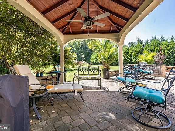 This 3 sided brick beauty is located in northern Calvert County and nestled on a premium level lot in Coxcombe Estates. Custom designed and meticulously kept this colonial provides over 5,000 finished square feet and offers a host of exterior and interior amenities that include amazing hardscape featuring paver patios, a pergola, stone walls and a firepit, a grand open foyer highlighting the curved staircase, a gourmet kitchen with a tile backsplash, stainless appliances, granite countertops and rich cabinetry, formal dining and living rooms and a family room with a gas fireplace with marble surround and mantel. Enjoy your morning coffee on your covered side porch! Upstairs you will find 3 generously sized secondary bedrooms, a guest bath, a buddy bath and a huge owner's suite boasting a tray ceiling, sitting room and a double sided fireplace. Just off the sitting room is the luxury bathroom that showcases a soaking tub, ceramic tiling, a customized walk-in shower and a closet/dressing room with built-in shelving. In the fully finished lower level you will find multi-purpose spaces that include a den, recreation room, exercise room and a theater, all perfect for entertaining. Don't miss other features that include hardwood flooring throughout the main level, upstairs hallway and in the master bedroom, a 3 car immaculate garage, a water softener rough-in, a plug for a portable generator, an electric fence, a new roof, upgraded crown moulding and trim, and a heat pump HVAC system with gas backup. All located in a friendly neighborhood with other fine homes!