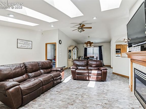 Experience mountain living at its finest with this stunning property located at 710 Log Haven DR in Woodland Park. Nestled amidst the picturesque mountains, this home offers an exceptional opportunity to immerse yourself in the beauty of nature. Featuring 3 beds and 2 baths, this property showcases a thoughtful interior design that harmoniously blends comfort and style. The seven skylights generously fill the space with natural light, creating a warm and inviting atmosphere throughout. The attic storage and crawl space provide ample room for all your belongings, ensuring organization and convenience. Step outside and discover the expansive backyard, complete with a charming cabin-style shed and two raised garden beds, perfect for growing your own vegetables and herbs. The privacy fence, built in 2022, offers seclusion and tranquility, creating a serene oasis for outdoor activities and relaxation. One of the many highlights of this property is its walking distance to Memorial Park, where the vibrant farmers market takes place, allowing you to conveniently enjoy fresh local produce and community events. Additionally, the back gate provides easy access to the Centennial Trail, opening up endless possibilities for outdoor adventures such as hiking, biking, and exploring the breathtaking scenery that surrounds you. Meticulously maintained, this home boasts a recently refreshed exterior paint job completed in 2022, ensuring it remains in excellent condition for years to come. Don't let this chance slip away. Seize the opportunity to embrace the enchantment of mountain living.
