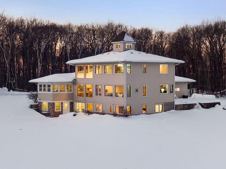 Welcome to Peaceful Hilltop, a stunning oasis nestled among the trees & hills of Osceola. Enjoy the calm, comfort & privacy this custom-made home offers. Three levels of floor to ceiling windows & vaulted ceilings soak in the natural light & beauty of your surroundings. Main level features open floorplan w/gorgeous showpiece chandelier, living room, laundry & two office spaces. Kitchen highlights stainless steel appliances, amble counter & cupboard space w/access to three-season porch. Awaken every morning to captivating sunrises in your upper-level retreat, complete w/primary bath & add'l bedroom. Ascend to the cupola & absorb sweeping 365-degree views of the countryside. Your lower-level great room provides access to walk-out patio. Two bedrooms, bath, hobby room & sunroom encompass the space. Beautifully landscaped gardens & lush backyard welcome you home. Home & Well/Septic Inspections have been completed for you. Enjoy photos, 3D tour, floorplans, inspection & more.