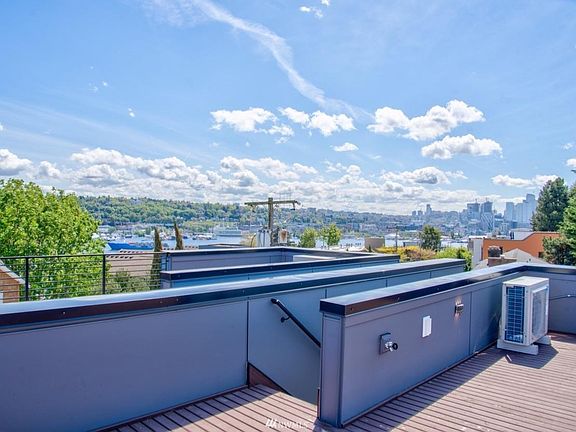 Stunning townhouse surrounded by parks and enjoy views of Lake Union from your private rooftop deck. This home is located in Westlake area of Queen Anne, Queen Anne school district, unique modern interior finishes throughout home. Luxury primary suite w/walk in closet and built-in shelves. Tankless water heater, Ductless Hp-mini-splits. Assigned 1 Car off street parking. Steps from restaurants, coffee shops and downtown. Dream commute (walk/bike/drive) to S Lake Union in minutes.
