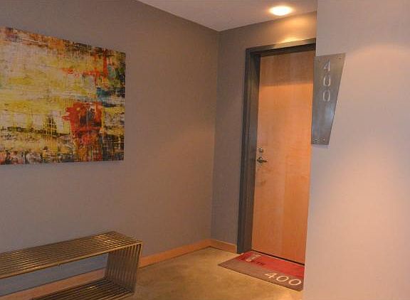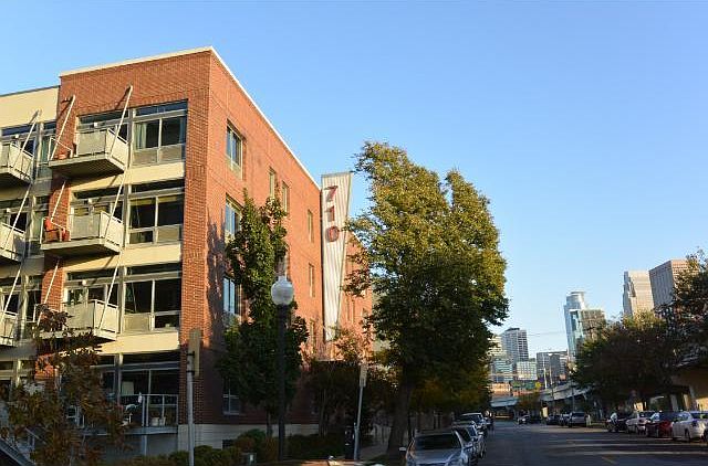 Sophisticated loft living in this top southwest corner of the 710 Lofts. Flowing open floor plan with floor to ceiling windows. Operable windows and double doors to a roomy balcony with beautiful sunset views. Substantial sliding warehouse doors, glass shower surround, kitchen backsplash and an abundance of counter space.