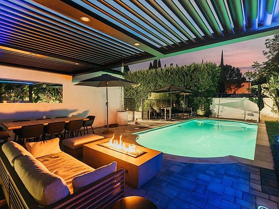 Welcome to this custom newer-built modern residence, a thoughtfully designed single-story home with pool that blends architectural style with elevated comfort. Behind the sleek façade, and fully gated with a motorized front gate, the home features along private driveway that provides an abundance of parking—an exceptional convenience rarely found in homes of this caliber. Inside, wide-plank wood floors, oversized windows, and a refined mix of black, white, and natural finishes create a warm yet upscale atmosphere throughout.At the center of the home, the chef’s kitchen showcases a 36" Bertazzoni 5-burner gas stove, built-in monogram refrigerator, quartz countertops, high-gloss cabinetry, a walk-in pantry, and a built-in wine rack. The open living and dining areas connect seamlessly, enhanced by recessed Bluetooth speakers that fill the space with sound and elevate both entertaining and everyday living.The primary suite offers a serene retreat with a custom-built out closet and a beautifully appointed bathroom, featuring a dual vanity and oversized walk-in shower clad in modern tilework. Additional bedrooms are generously sized and well positioned for comfort and privacy. Designed for resort-like living, the backyard features a sparkling salt water heated pool with all newer equipment, surrounded by lush tropical landscaping for total privacy. The outdoor space features, lounge area, space for your bbq, a custom louvered pergola with built-in lighting and a linear fire feature create the perfect setting for year-round enjoyment. Completing the property is a rooftop deck above the detached garage, offering peaceful hillside views and another relaxing space to unwind.With its refined finishes, Unify camera system, modern amenities, and thoughtful single-level design, this home delivers a truly elevated living experience. Schedule a private viewing today.