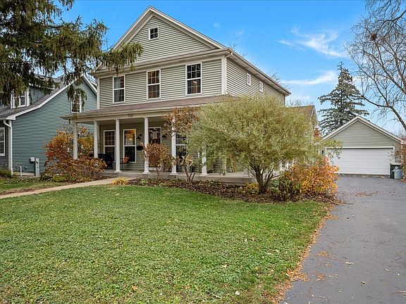 Discover this beautifully maintained two-story home offering 4 bedrooms, 3.5 bathrooms, and a thoughtful blend of comfort, character, and modern upgrades. Built in 2006, this property features hardwood floors throughout, a welcoming wrap-around front porch, and a newly refinished deck perfect for entertaining. Inside, you'll find a warm and inviting living space. You'll enjoy preparing meals in a kitchen designed for function and beauty! The connected family room completes the ambience with a fireplace and built-in bookshelves. Spacious dining room for holiday entertaining, and the adjacent office/den space tops off the main level. The finished basement provides flexible room for recreation, exercise area, and presents with a bedroom and full bath. The fenced-in yard adds privacy and convenience for pets, play, and gardening. This home is equipped with valuable whole-home systems including a whole-house water filter, reverse osmosis system, blue-light air cleaner, and a radon mitigation system-offering peace of mind and exceptional air and water quality. New HVAC in 2024. Located within walking distance to town, and just moments from the Fox River and commuter train, this home combines suburban charm with unbeatable convenience. Your next chapter begins here-don't miss it!