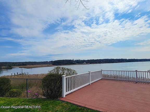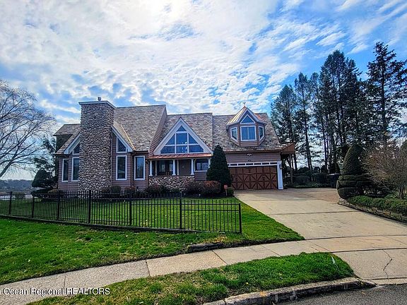 Under Contract, continue to show. Waterfront home with access to water & nestled high on a bluff overlooking the Manasquan River on cul-de-sac! Located in preferred Bluff View Estates near the reservoir & marina in north Brick! This unique 2 story custom home is a rare find. Enjoy water views & the amazing sunrises & sunsets! This home features 3/4 BRs, 4 full baths, Full finished walk out basement with game room & great mother/daughter set up with separate entrance. Great rm with cathedral ceilings & chalet style beams. Other features include: slate roof, gas stone frpl, 3 decks, gas/electric fireplaces in 2 bedrooms, large deck overlooking water with steps down to the river, enjoy kayaking right from your back yard directly to Allaire State Park! 2-Car Garage, Seller Owns Solar Panel
