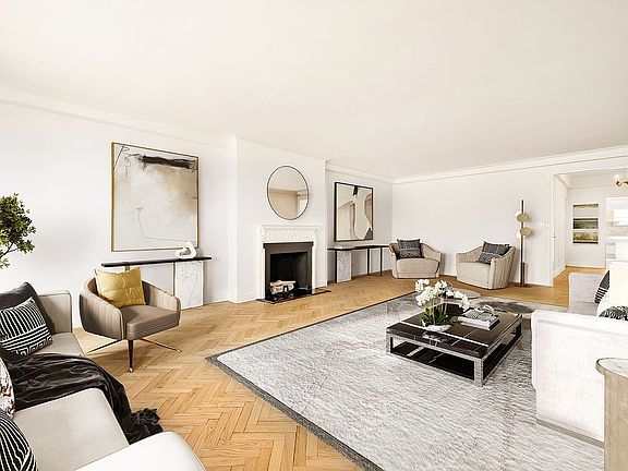 Perched high above Park Avenue, this exceptional classic six home offers an abundance of natural light, with three exposures and two private terraces that offer sweeping central park and skyline views. A 25-foot entrance gallery opens to a corner living room that epitomizes refined living-bathed in sunlight and unobstructed park views. Herringbone hardwood floors, a decorative fireplace, and a grand 20-foot formal dining room, each with double exposures add to an air of timeless elegance.