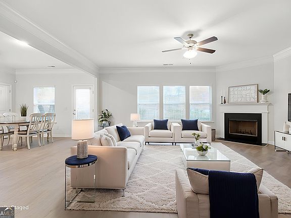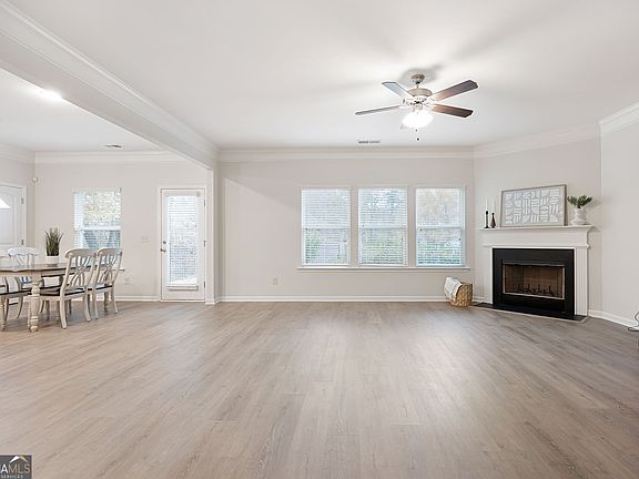 Amazing Value located in the secure gated community of Tyson Woods, just minutes from Downtown Woodstock this very spacious 2,600 square foot 3-bedroom, 3-bath home has a freshly painted interior, new luxury plank flooring, and offers the perfect blend of comfort, function, and convenience. (Floor Plans located in Photos.) Enjoy top-rated Cherokee County schools, nearby shopping, dining, KSU, and the outlet malls, all within easy reach. The spacious kitchen features white cabinets, stone countertops, a breakfast bar, and additional cabinetry with a built-in desk, opening to a large living room with a wood-burning fireplace. A mudroom-style entry from the garage adds style and everyday practicality. Upstairs, the huge primary suite includes an oversized shower and a custom walk-in closet. The flexible secondary bedrooms include one that was purposely built as double-sized, ideal for a second primary bedroom, playroom, media room, or home gym. For those that desire, it could be easily converted into two nice-sized bedrooms, making this a 4-bedroom home. Laundry is conveniently located on the upper level as well - no more hauling laundry up and down the stairs! The HOA-covers lawn care and trash service. Enjoy a strong sense of community with sidewalks, streetlights, and a neighborhood park right across the street.