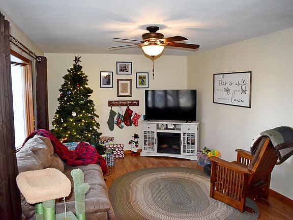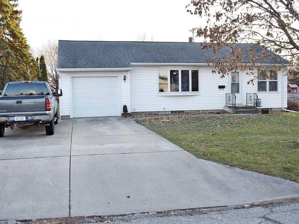 Move-in ready ranch style home with vinyl siding, yard shed, block patio & wide driveway for additional off the street parking. The house has an updated kitchen, open kitchen/ dining room, two bedrooms, one bathroom, living room and a usable basement.