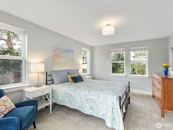 Enjoy the peace & quiet of this Morgan Hill property, while being just a short walk to Uptown & Downtown. Ideally located minutes to Chetzemoka Park, Fort Worden & the beach. This architecturally designed home on nearly ½ acre offers privacy, elegance & stunning views. Featuring 3 beds, 3 baths, a guest suite, home gym & bonus room. Enjoy a sun-drenched south-facing patio & serene north-side views over Madrona treetops. Beautiful views from every room. The primary suite boasts a covered deck w/ PT Bay views, while the loft showcases a 360 degree view of PT Bay & the Cascades. The lower level includes a guest suite w/ optional bonus room access. With a new roof in 2024 & extensive updates, this home is a peaceful retreat above it all!