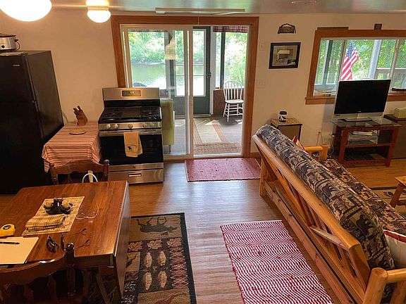 Just bring your suitcase and move right in! This cozy cottage in the foothills of the Adirondacks comes fully furnished and is move-in ready. Enjoy your view of the Oswegatchie River from a large screen porch or either of two decks overlooking the back yard and waterfront, or gather around the fire pit by the dock. Sliding glass doors allow access to the screen porch from the main living/dining room, while another sliding door takes you from the main bedroom to the larger of the two decks. You can paddle for miles in either direction on the slow-moving Oswegatchie, or have a swim right off the shore. This cottage could easily be converted to a year-round residence with a couple simple upgrades and is perfect for anyone looking for a quiet getaway. You'll be just minutes from the Edwards Opera house and downtown shops, as well as Stammer Creek State Forest and several other outdoor recreation resources. The attic space stores leftover building materials, and could be converted into more sleeping space. Also included with the cabin is all of the linens, towels, and kitchen appliances, cookware and utensils you could ever need. The storage shed offers plenty of room for any tools or equipment you may need. DirecTV and internet access is available at the property.