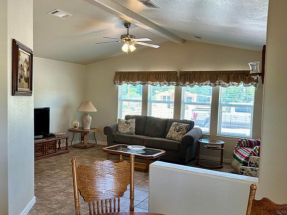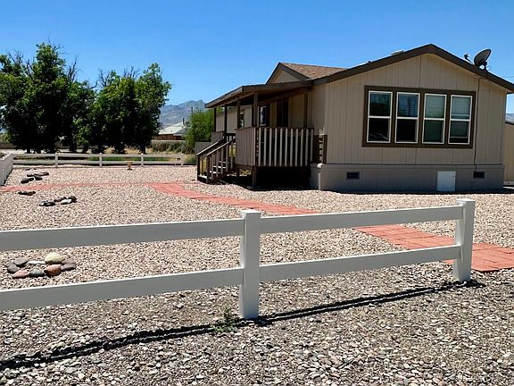 Welcome home to this beautifully maintained property, centrally located in Thatcher on .46 acres! With easy access to parks, trails, shopping, and off-road adventures, and an affordable price. This listing won't last long! As you enter you are greeted by a spacious living area that flows into the kitchen, and dining area, Creating an inviting space for entertaining guests. High ceilings and large windows flood the home with natural light, making every room feel warm and welcoming. Traveling down the hall you will find 2 bedrooms, 2 bathrooms, and a laundry room. Lots of storage throughout the home, as well as outdoors with the shed out back. The outdoor space is beautifully landscaped and presents a porch perfect for reading a book, hosting a gathering, or watching a sunrise.