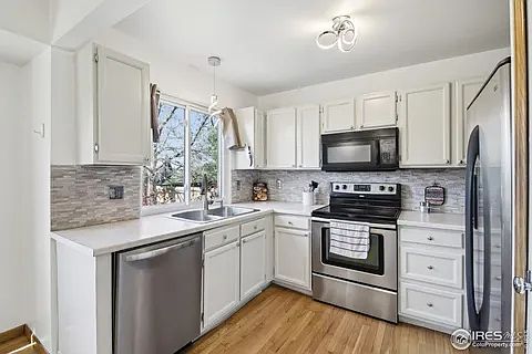 Charming Tri-Level Home in Lafayette with Mountain Views. Welcome to 710 Sedge Way-a well-maintained tri-level home in a quiet Lafayette neighborhood minutes from Boulder, Longmont, Denver. With three bedrooms and two bathrooms, this inviting residence is designed for comfortable living and easy entertaining. Inside, you'll find a bright, functional layout with multiple living areas, perfect for relaxing or hosting guests. The kitchen features hardwood floors, newer stainless steel appliances, and an open flow into the dining and living spaces. Updated windows bring in natural light.while a cozy pellet stove adds warmth. Additional upgrades include a Rinnai tankless water heater, six-panel interior doors, and remodeled bathrooms. The finished garage, complete with a freshly painted floor, offers extra convenience and storage. A front-yard sprinkler system makes maintenance simple.Out back, the landscaped yard features blooming roses, mature walnut trees, and a spacious deck-an ideal spot for outdoor dining, morning coffee, or weekend gatherings. Just minutes from parks, trails, top-rated schools, and downtown Lafayette, this home is move-in ready and full of character.