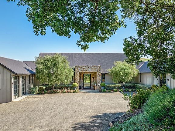 This magnificent estate's main home maximizes natural light and flow. Featuring three en-suite bedrooms, with a primary suite boasting a spa-style bath, walk-in closet, outdoor shower, and sun deck with vineyard and mountain views. The home includes a media room, sunroom, game room, gym, and an open-concept chef's kitchen with imported Italian cabinetry, scullery, BBQ deck, and family room overlooking the pool and spa. Expansive terraces lead to the pool area, offering vineyard views from almost every room. Additional features include a climate-controlled wine cellar, two-car garage with lift, and three fireplaces. The separate guest house mirrors the main residence's quality, offering two en-suite bedrooms and a full kitchen. Ten-foot, floor-to-ceiling windows frame oak trees and vineyards, and a cantilevered deck provides privacy and views. This extraordinary property is offered turnkey, fully furnished with high-end designer pieces, ready for immediate enjoyment. It's a modern Napa retreat, offering seclusion yet is just a 10-minute drive to downtown Napa and an hour from San Francisco