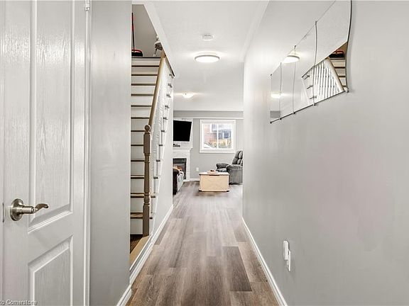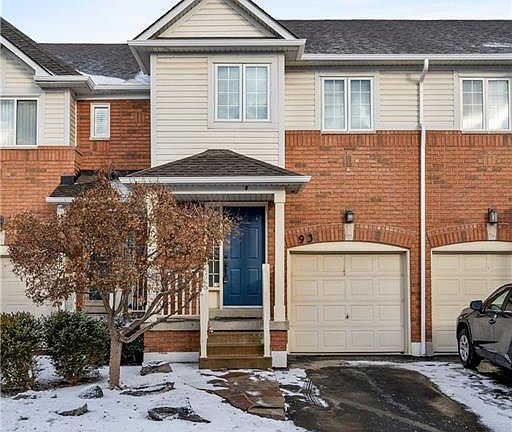 Rare opportunity to own in sought after Bayview Townhomes On-The-Lake. This area is known for its beautiful large towns, proximity to RBG and parks and trails. Exterior features include an oversized lot with treed common space, a large shed and lots of privacy plus a garage space. Large eat in kitchen with open living room featuring a new fireplace surround and flooring. The main floor also features a two-piece bathroom and a large entrance. This home has three large bedrooms including newly completed ensuite off of the primary bed plus another full bath. Fully finished basement with large pantry, plenty of storage and sepearate laundry area. No rental items here. Move in ready! Updates include Windows(2019) Roof(2012) Ensuite(2021) Flooring(2024) Thermostat(2020) Fireplace(2020) This won't last long!