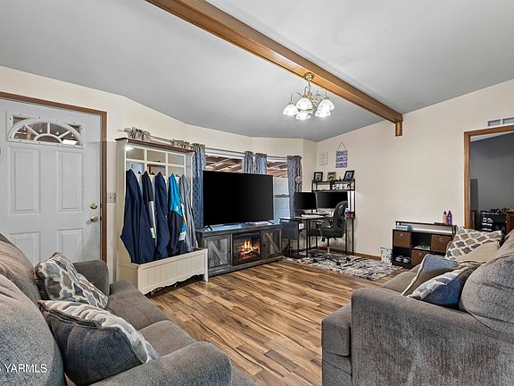 Welcome home to this Country Cottage floorplan home in the East Selah Pomona View Mobile Home Park. With some of the lowest lot rents around, and with some of the best amenities and amazing views, it is waiting for you to call it home. The well-designed floorplan offers 2 separate living rooms, an open kitchen and dining area, and 2 bedrooms with a 3rd non-conforming bedroom or flex space. The larger primary bedroom appoints privately on one end of the home; complete with dual vanity en-suite with shower, jetted tub, and walk in closet. Enjoy outdoor living on the large covered attached patio, and the fenced backyard with above ground pool and 2 storage sheds. Other amenities include ample storage, workspace and parking on the adjacent full-length carport, along with additional parking and front yard space. This home is in great condition and well cared for with fully updated HVAC system in 2021, and newer exterior paint. The $480/month lot fee covers water, sewer, garbage, and irrigation. Buyer must make application to live in the community and pass a background check. 3 person limit per home. Pets allowed under 30 lbs. Contact a local Realtor today to schedule a private tour.