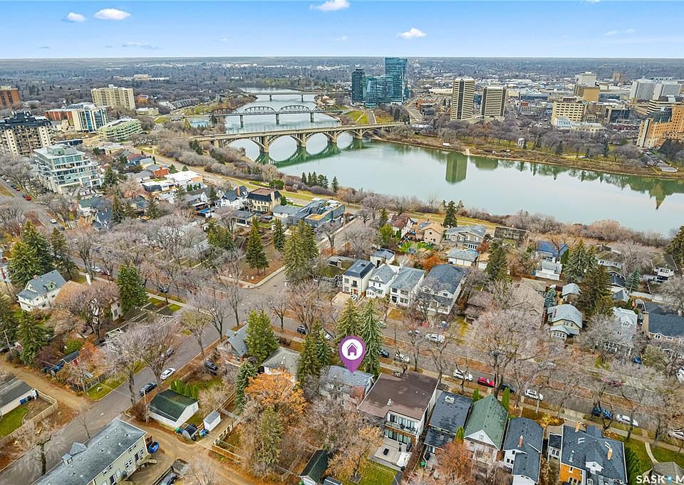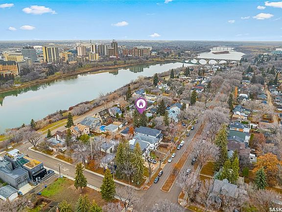 Welcome to 710 University Drive! Presenting a rare opportunity to secure your place on one of Saskatoon’s most prestigious and historic streets. Whether you’re envisioning your dream home on this coveted lot, seeking an investment to build two custom residences with R2 zoning, or drawn to the timeless character of a Dutch Colonial, this property offers endless potential. Set on an expansive 52 x 140 ft lot, this home is just steps from the river, minutes to Broadway’s vibrant boutiques and cafes, and a short stroll to the University of Saskatchewan. University Drive is renowned for its mature tree-lined streets, heritage charm, and unbeatable walkability to river trails and downtown amenities. Built in 1926, the two-story residence blends historic character with thoughtful updates. Original hardwood floors and a gas fireplace anchor the inviting living room, while a sunroom with shuttered windows provides a bright, relaxing retreat. The formal dining room, complete with built-ins, connects to a kitchen that pairs vintage appeal with modern function, featuring a Miele gas cooktop and oven, smart fridge-freezer, farmhouse sink, and views of the private yard. Upstairs, you’ll find a spacious primary suite with an updated en-suite, two generous secondary bedrooms, and a 4-piece bathroom. The fully developed lower level offers a rec room, guest bedroom, updated bath, and laundry with a smart washer and dryer. The backyard is an expansive private space with mature trees and a patio, ideal for entertaining, gardening, or future redevelopment. Recent updates include: high-efficiency furnace, on demand hot water heater, bathroom updates and kitchen appliances. This property presents a rare opportunity. Whether you restore its character charm, build your dream residence, or capitalize on R2 zoning for redevelopment, 710 University Drive is a great chance to create something remarkable in one of Saskatoon’s most desired neighbourhoods. Call your Realtor today!