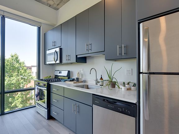 The Nelson Apartments is a new apartment community at 710 W 14th St, southwest of Chicago's Loop neighborhood offering studios, 1-bedroom, 2-bedrooms, and 3-bedroom apartments. Apartments at The Nelson feature: Huge custom closets, wide-plank flooring throughout, quartz countertops, in-unit washer/dryer, roller shade window treatments, energy-efficient stainless appliances, glass-enclosed showers, and extra high finished ceilings. Building amenities include co-working space, communal kitchen, cocktail terrace with fire pit, dog run, rooftop with grills and picnic tables, plus a modern gym with fitness studio. The Nelson also offers unique amenities like a hangout saloon for parties, hammock loungers, and a mobile app to manage a keyless entry, guest lists, and packages. With an emphasis on social living, The Nelson's event calendar will be packed with opportunities to connect with neighbors. The buildings eclectic vibe continues throughout the neighborhood with multi-cultural restaurants, shops, and live music venues. The Nelson is near the University of Illinois at Chicago and Rush University Medical Center and is also super convenient for Metra or expressway commuters. No short term rentals, 12 month lease minimum!